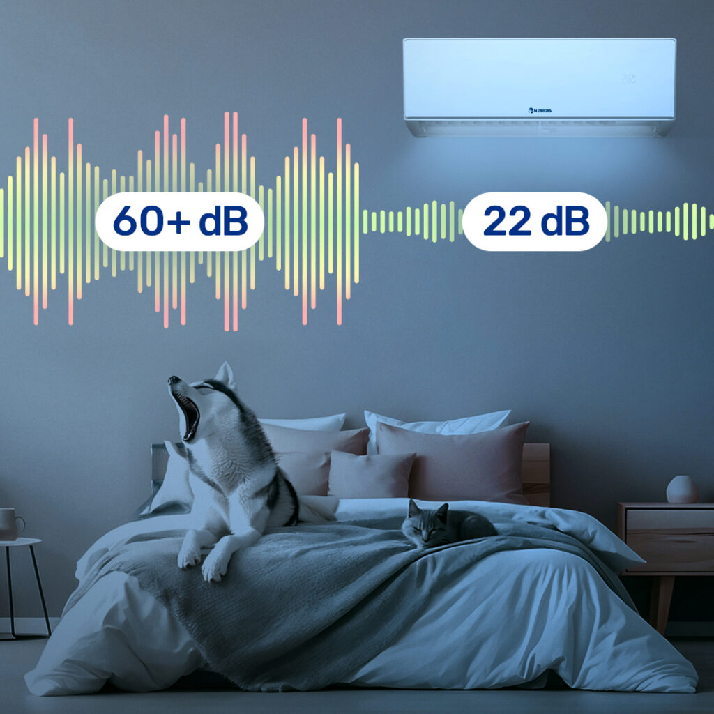 Un buon sonno determina quanto ti sentirai riposato ed energico il giorno dopo, e anche i rumori di fondo più leggeri possono influenzarne la qualità. Il climatizzatore NØRDIS NOVA funziona in modo estremamente silenzioso — solo 22 dB — permettendoti di godere di aria fresca e piacevole nelle notti estive senza disturbi o rumori indesiderati.