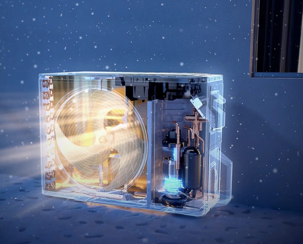 Grazie all’ottimizzazione energetica basata su AI, l’unità garantisce un riscaldamento e un raffrescamento intelligenti anche a bassa potenza o in modalità standby, con un risparmio fino al 38% di energia. Nonostante le elevate prestazioni, il funzionamento resta estremamente silenzioso, con soli 19 dB, per un comfort senza disturbi.
