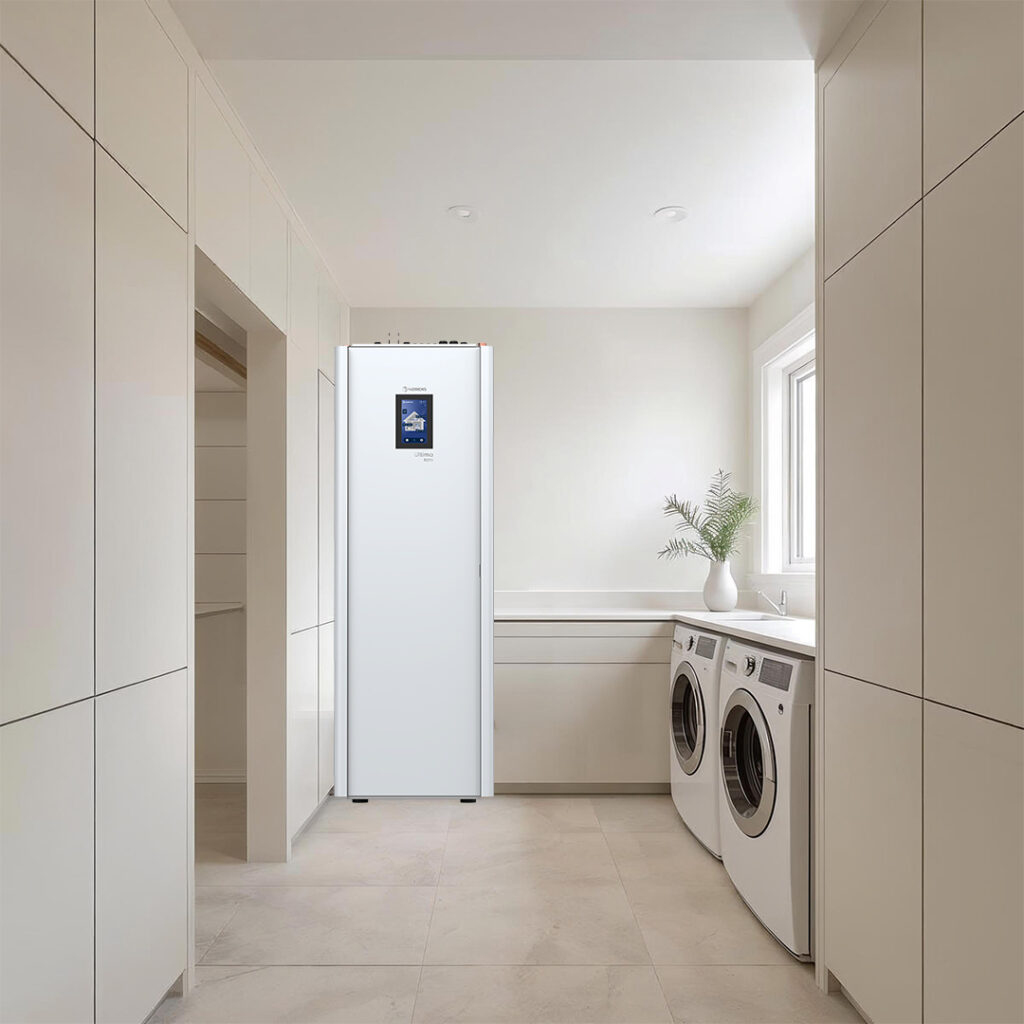 • Il serbatoio integrato da 250 litri garantisce una quantità di acqua calda sufficiente per tutta la famiglia.