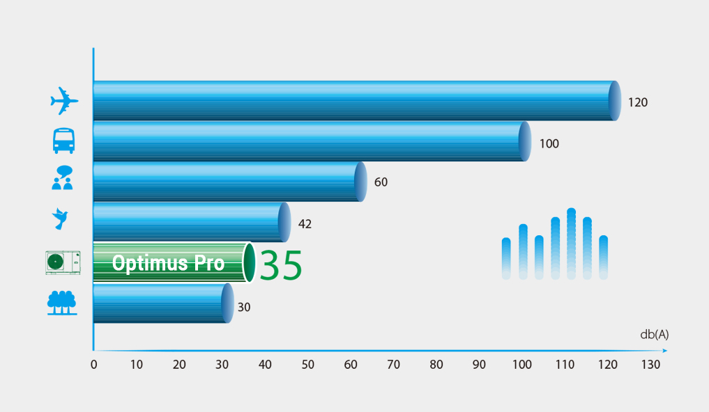 Grazie all’elevato livello di ottimizzazione delle soluzioni tecniche, il livello di pressione sonora delle unità NØRDIS Optimus Pro da 4 kW è di soli 35 dB(A) a una distanza di 3 metri.