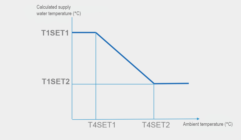 Grazie alla funzione della curva climatica, la temperatura dell’acqua si adatta automaticamente alle variazioni della temperatura esterna. Quando la temperatura esterna aumenta o diminuisce, il carico di riscaldamento si riduce o aumenta di conseguenza e la temperatura dell’acqua viene regolata automaticamente. Allo stesso modo, al variare della temperatura esterna, anche il carico di raffrescamento e la temperatura dell’acqua si adattano in modo automatico.